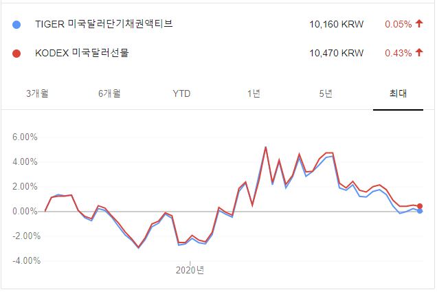 미국 주식은 미국 달러에 투자하기 때문에 미국 주식을 사는 것은 미국 달러에 간접적으로 투자하는 좋은 방법이다. 하지만 미국 증시가 지금처럼 하락한다면 아무리 달러가 올라도 주식을 잃을 여유가 없다. 달러를 개별적으로 사서 달러예금에 넣는 것도 좋은 방법이지만 연금저축펀드로 달러선물 ETF를 사는 것도 달러에 간접적으로 투자하는 좋은 방법이다. 저는 삼성자산운용의 Kodex USD Futures ETF에 투자하고 있는데, 아래 차트에서 보시다시피 Kodex USD Futures ETF는 최근 USD 상승과 같은 수준에서 거래되고 있습니다.