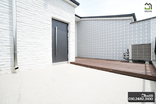 데크와 타일로 마감되어 넓은 면적의 사적인 테라스입니다. 시야개방감을 고려한 강화유리 난간 재미있는 해석의 벽면모양 타일 수도시설 및 조명시설 등 취향에 맞게 인테리어하기에 무난한 사이즈입니다.모든 방