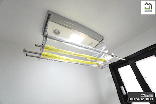 높낮이를 조절할 수 있는 전동 건조기와 단차를 둔 바닥으로 배수가 편리한 공간이 좋은 다용도실입니다.욕실1